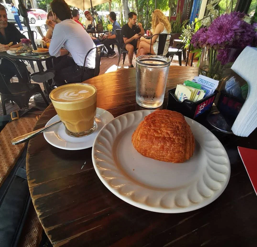 Tiny coffee shop and bakery located near the Monumento a la Patria on Paseo Montejo. Although small inside there is a patio facing the Paseo Montejo which is very nice unless it’s too hot or rainy. The coffee and pastries are delicious and the service is good and welcoming. Definitely one of the best coffee places in Mérida. Highly recommended